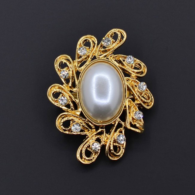 Позолоченная брошь с фианитами и жемчугом 321-69