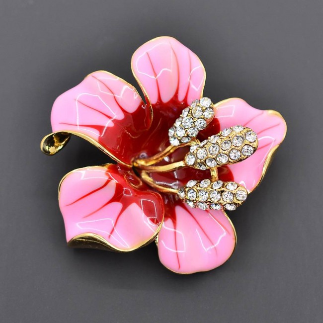Позолоченная брошь с фианитами 801-63-розовый