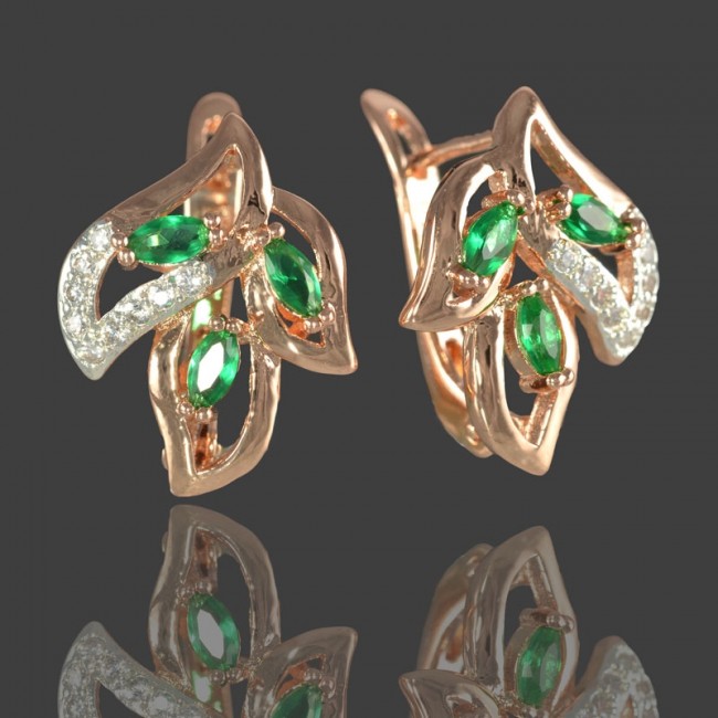 Позолоченные серьги Fallon 92200037-зеленые фианиты