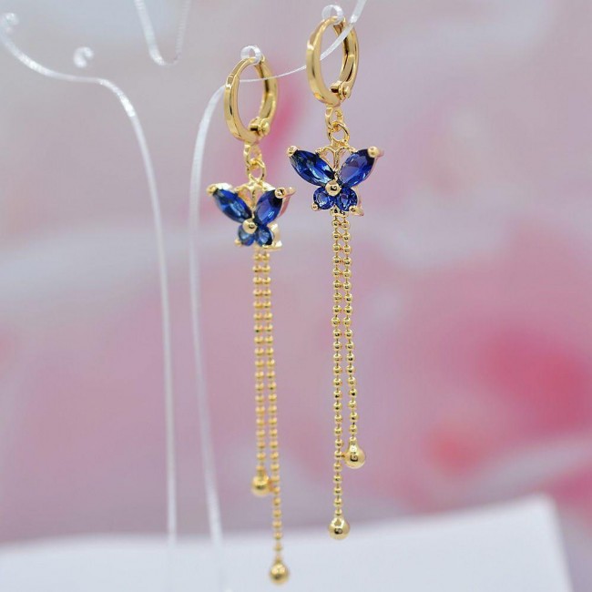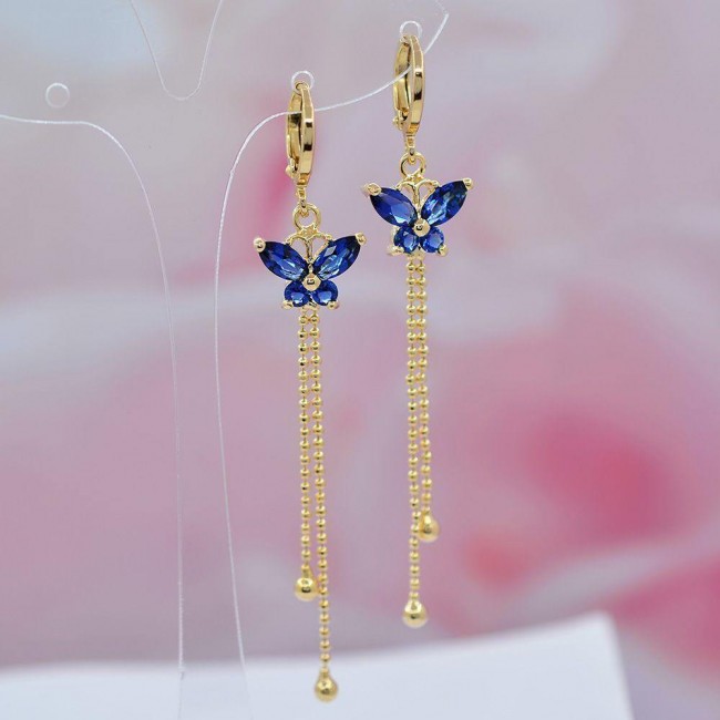 Позолоченные серьги с фианитами оптом 10-9221-синий