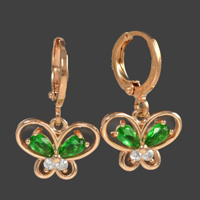 Позолоченные серьги " Бабочки" Xuping 2837-зеленые фианиты