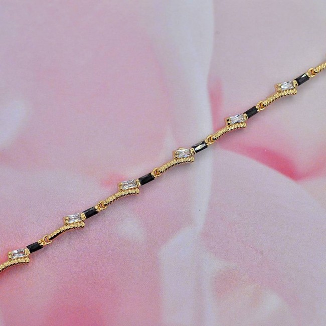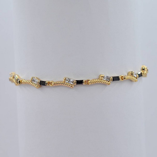 Позолоченный браслет с фианитами 10-7427-черно-белый