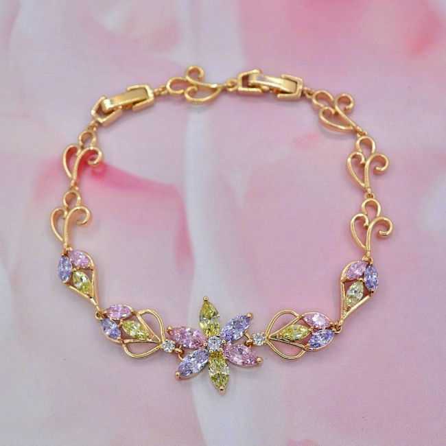 Позолоченный браслет с фианитами оптом 10-7315-мультиколор