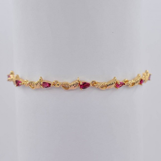 Позолоченный браслет с фианитами оптом 10-7424-красный корунд