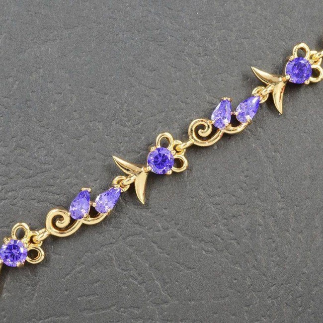 Позолоченный браслет с фианитами оптом 7104-фиолетовый
