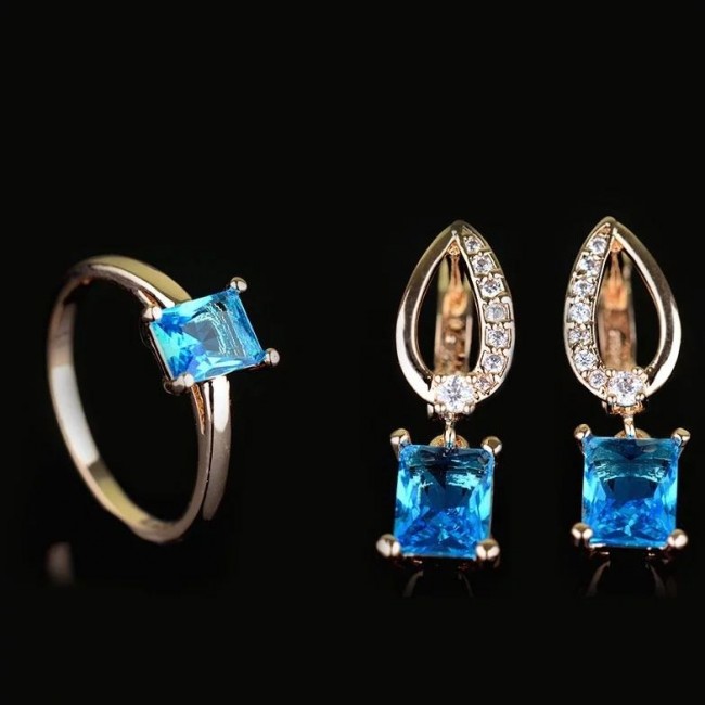 Позолоченный комплект Fallon 81200167-тёмно-голубые фианиты