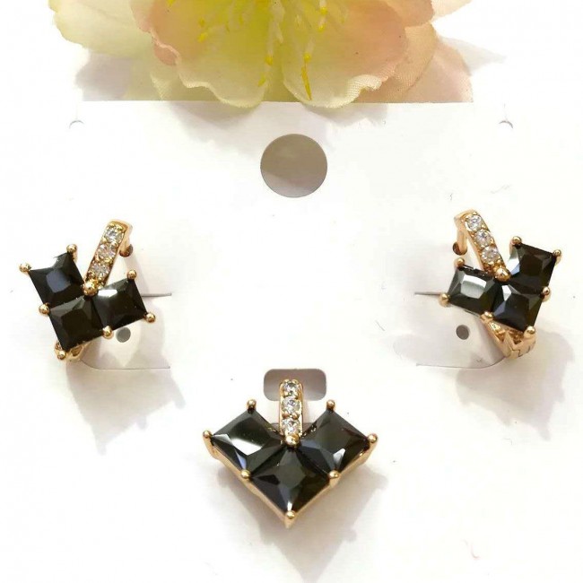 Позолоченный комплект с черными фианитами оптом 10-6008