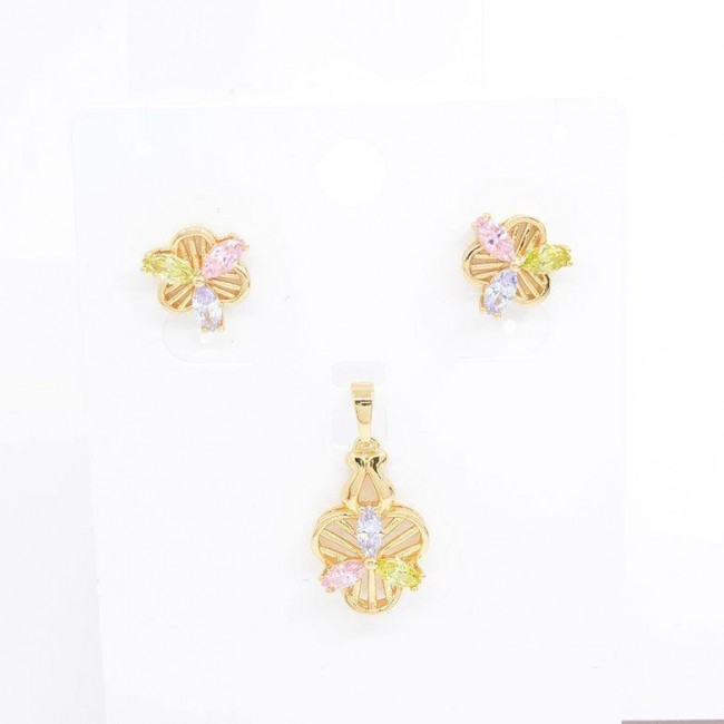 Позолоченный комплект с фианитами оптом 10-6007-мультиколор