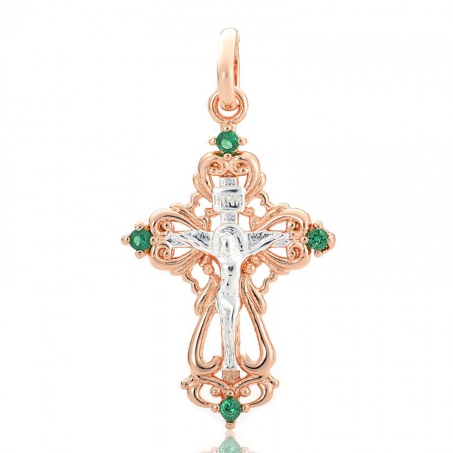 Позолоченный крестик Fallon 96201158-зеленые фианиты