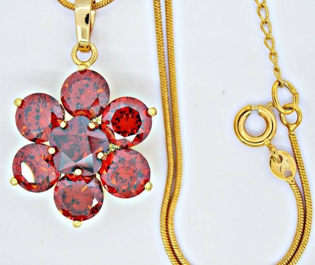 Кулон с красными фианитами оптом, натуральная позолота модель 30970