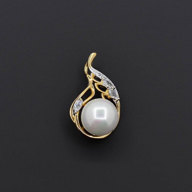 Позолоченный кулон с фианитами и жемчужиной 10-3520