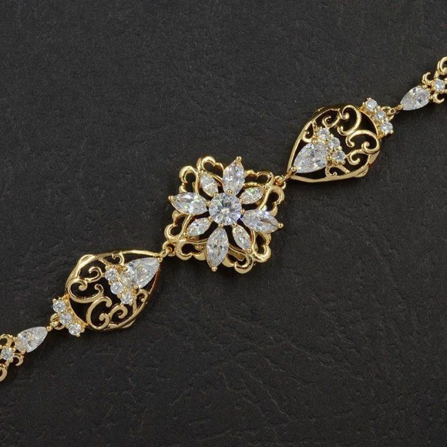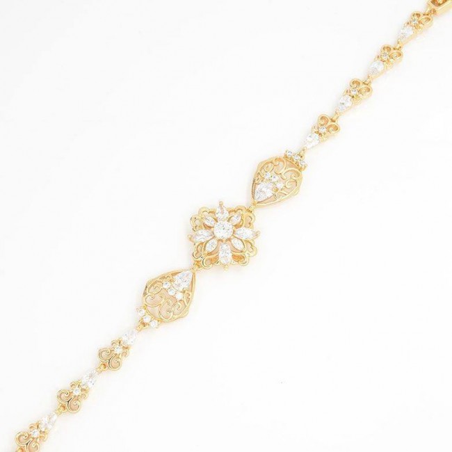 Браслет с белыми фианитами , натуральная позолота модель 7120