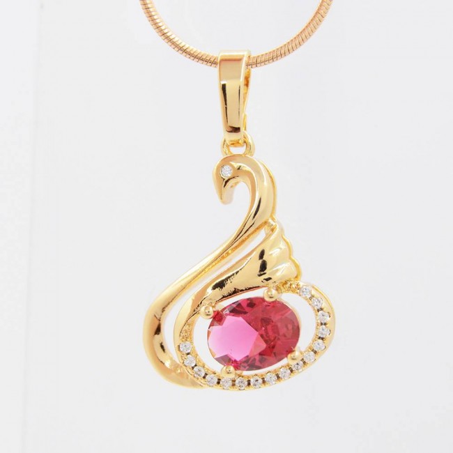 Прекрасный кулон Лебедь XP 10-3019- красный корунд