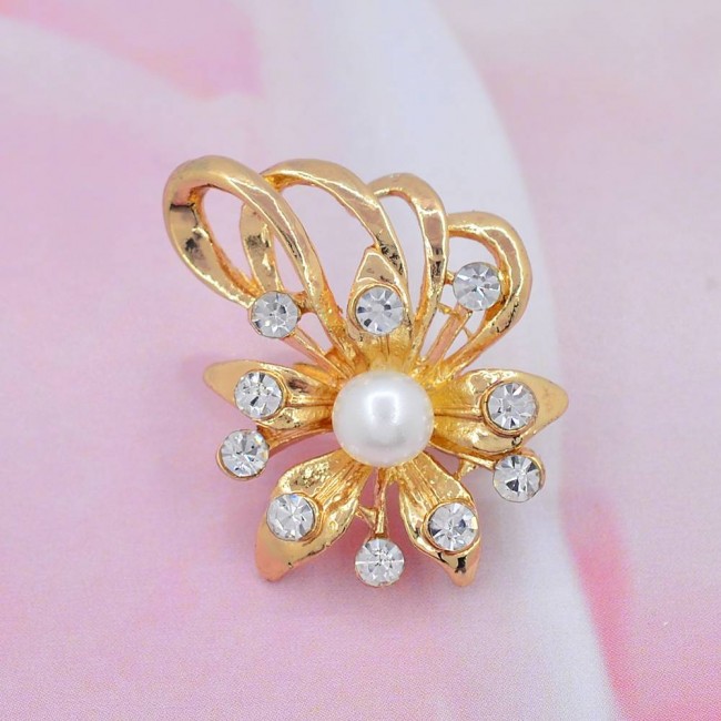 Брошь с фианитами и жемчугом