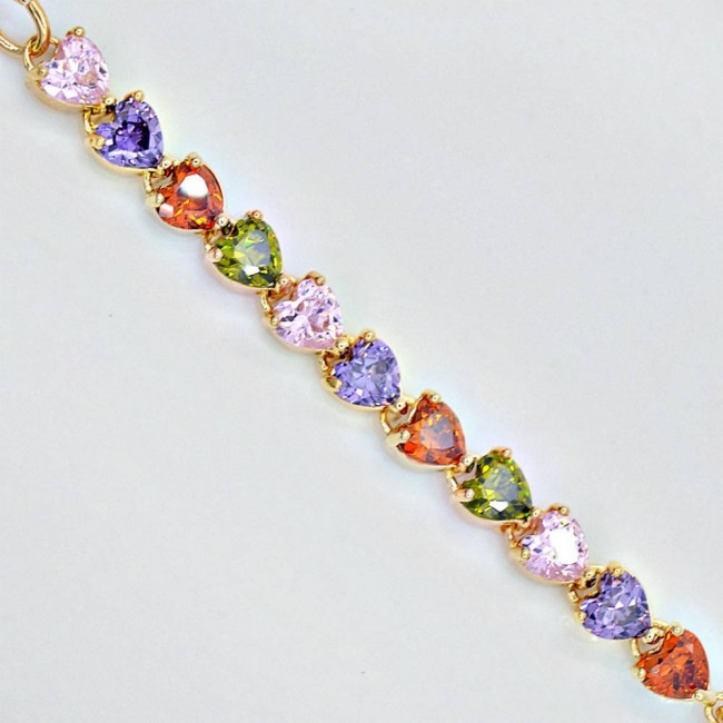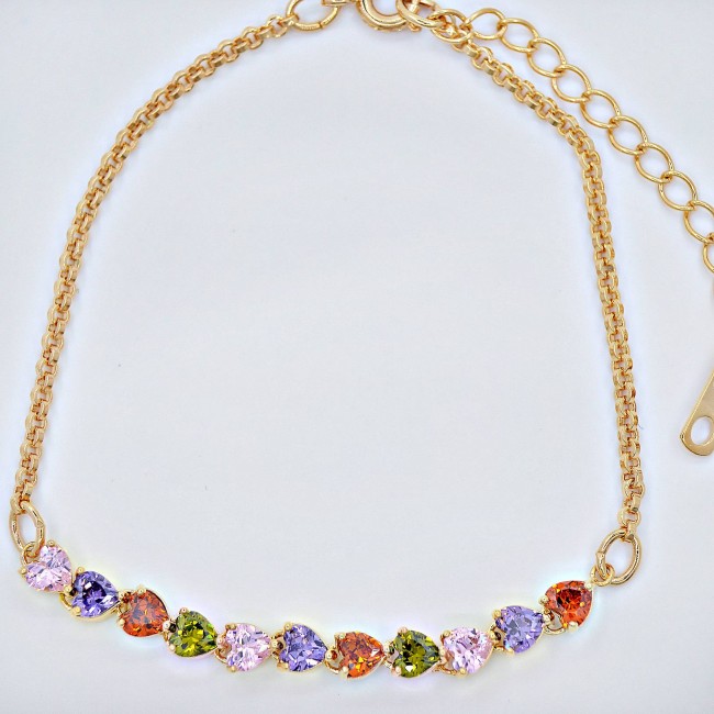 Браслет с разноцветными фианитами оптом, натуральная позолота модель 71386
