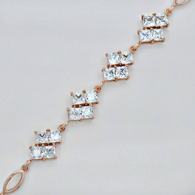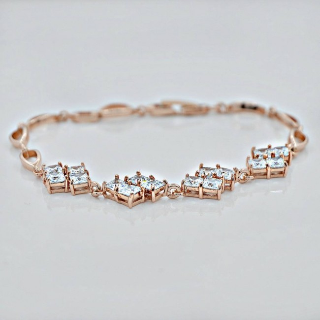 Браслет с белым фианитом оптом, натуральная позолота модель 72467