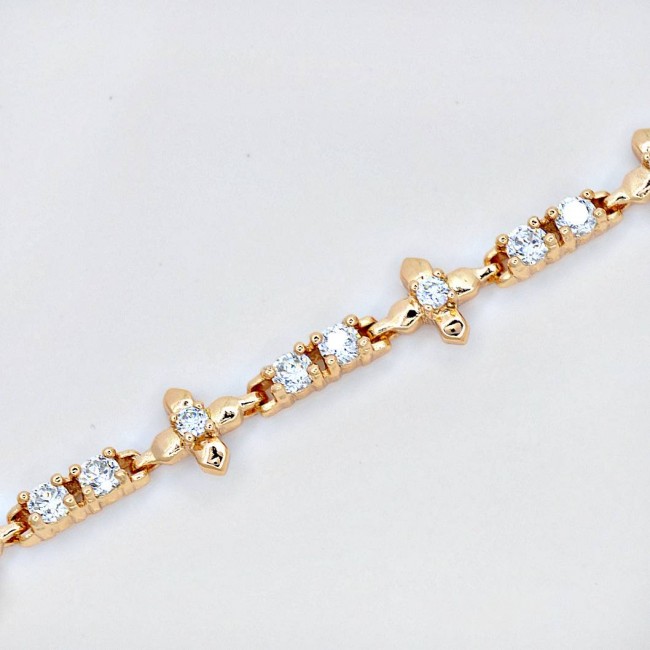 Браслет с белыми фианитами оптом, натуральная позолота модель 72441