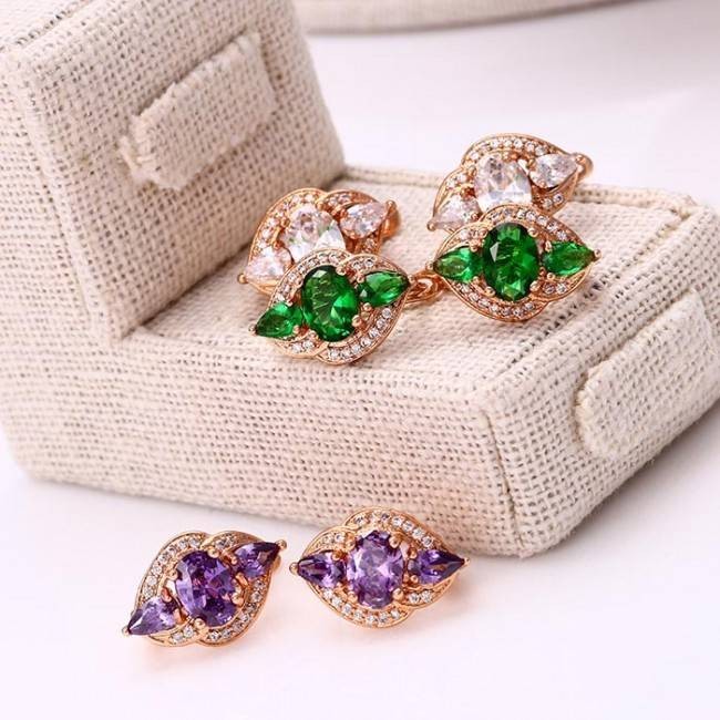 Сережки с фиолетовым фианитом и искусственными бриллиантами оптом, модель 26316