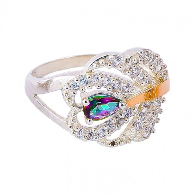 Серебряное кольцо с золотыми вставками 16