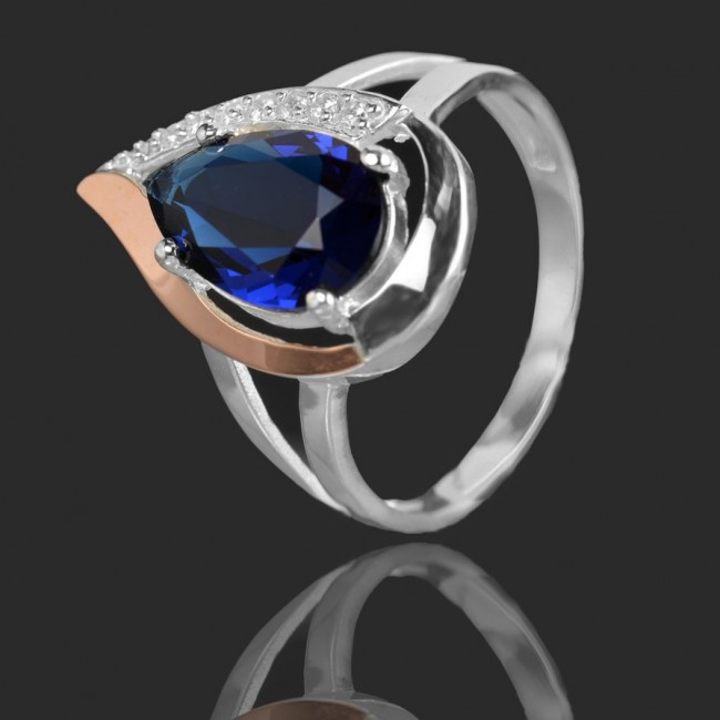 Кольцо выполнено из серебра 925 пробы с напаянными пластинами золота 375 пробы, вставки фианит