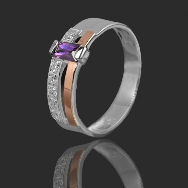 Кольцо выполнено из серебра 925 пробы с напаянными пластинами золота 375 пробы, вставки циркон.