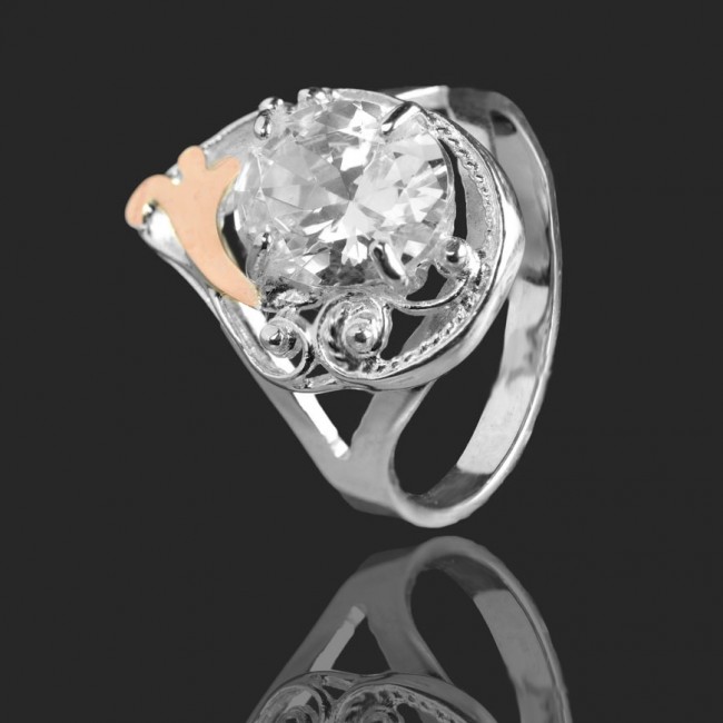 Кольцо выполнено из серебра 925 пробы с напаянными пластинами золота 375 пробы, вставки циркон.