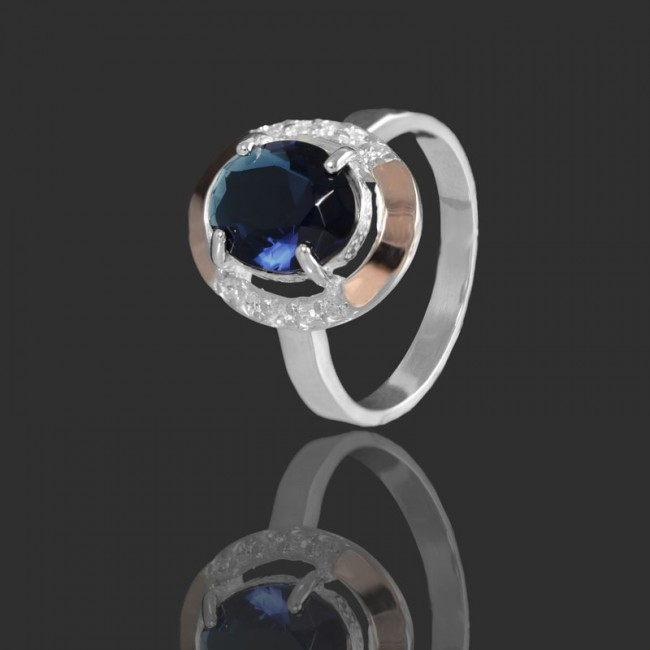 Серебряное кольцо с золотыми вставками 44