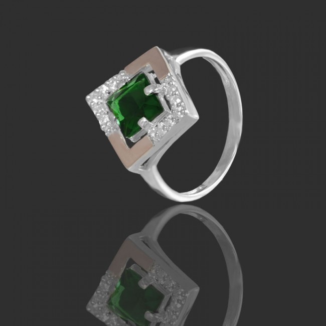 Кольцо выполнено из серебра 925 пробы с напаянными пластинами золота 375 пробы, вставки циркон