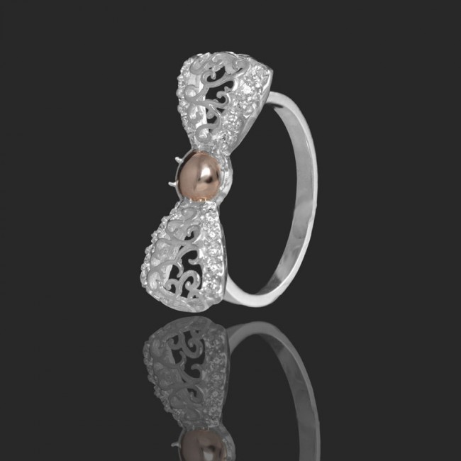 Кольцо выполнено из серебра 925 пробы с напаянными пластинами золота 375 пробы, вставки циркон
