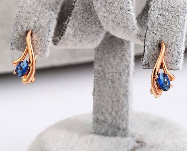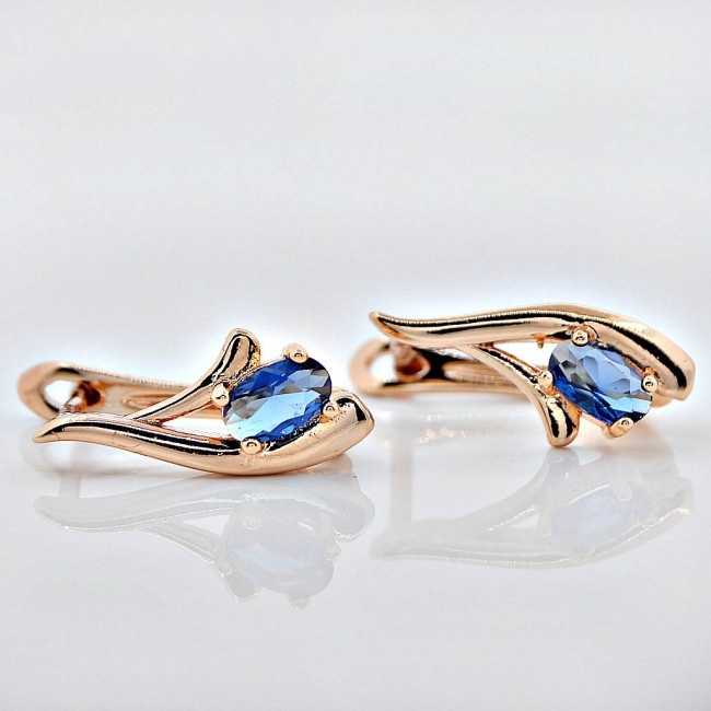 Сережки с фианитами синего цвета оптом, натуральная позолота модель 26923