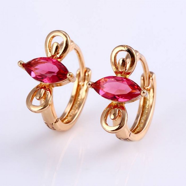 Милые сережки с красным/белым фианитом оптом, натуральная позолота, модель 24742