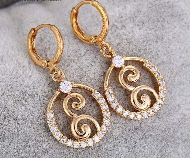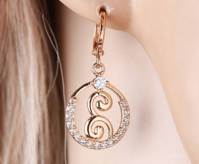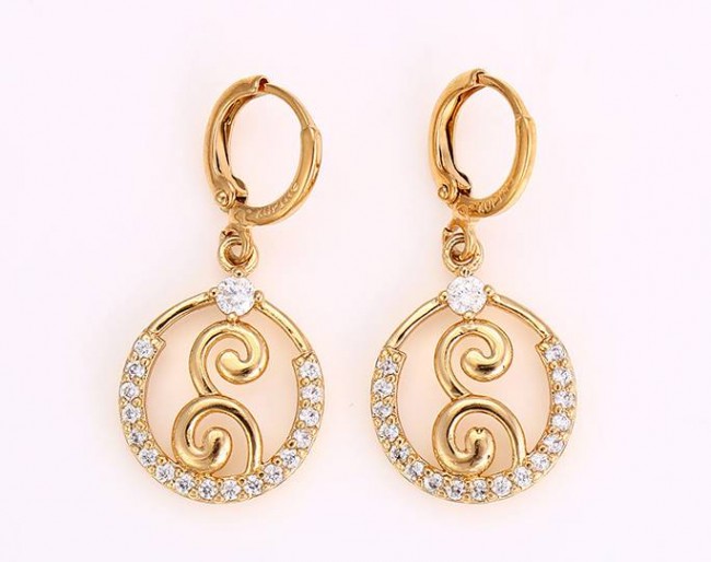 Узорчатые серьги с прозрачными фианитами оптом, модель 27046