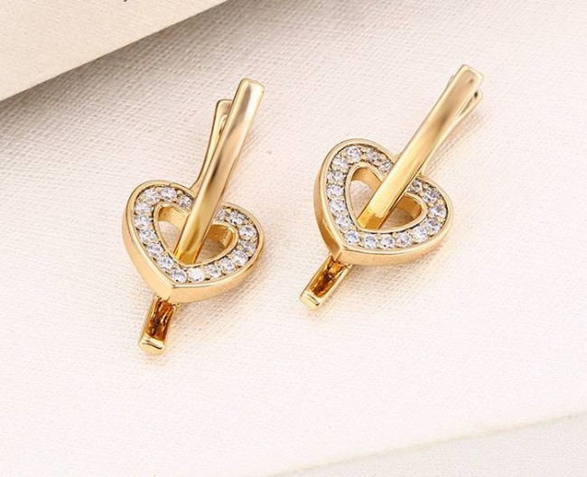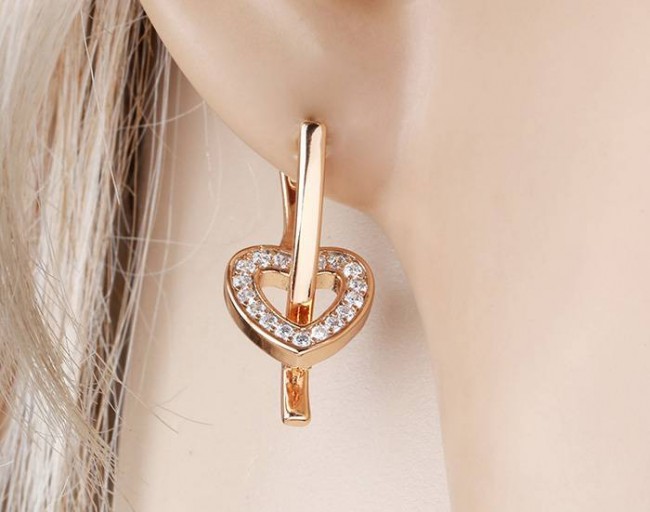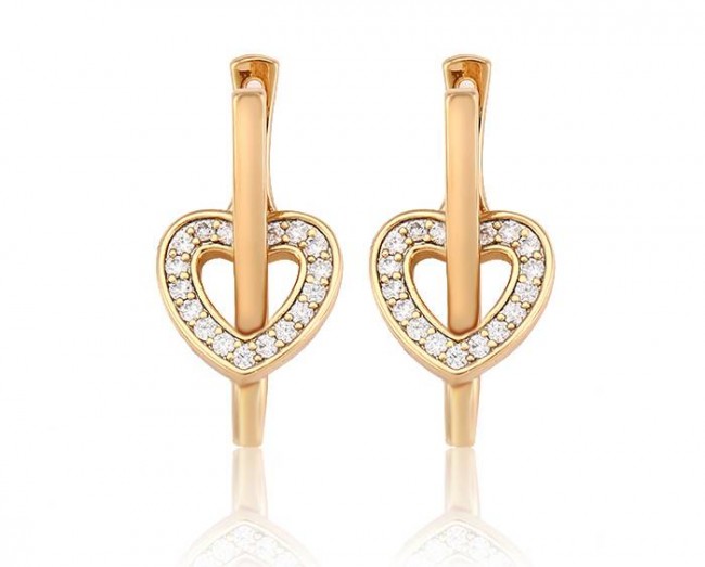 Сережки в форме сердец с белым фианитом оптом, модель 27875