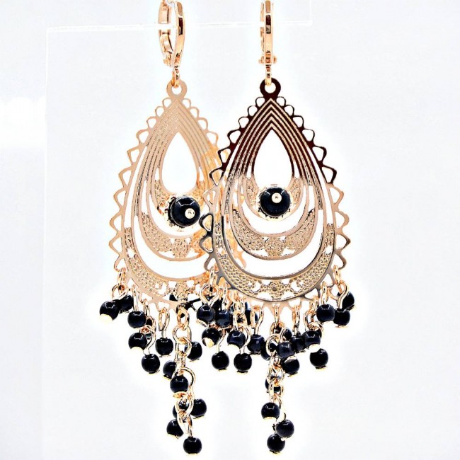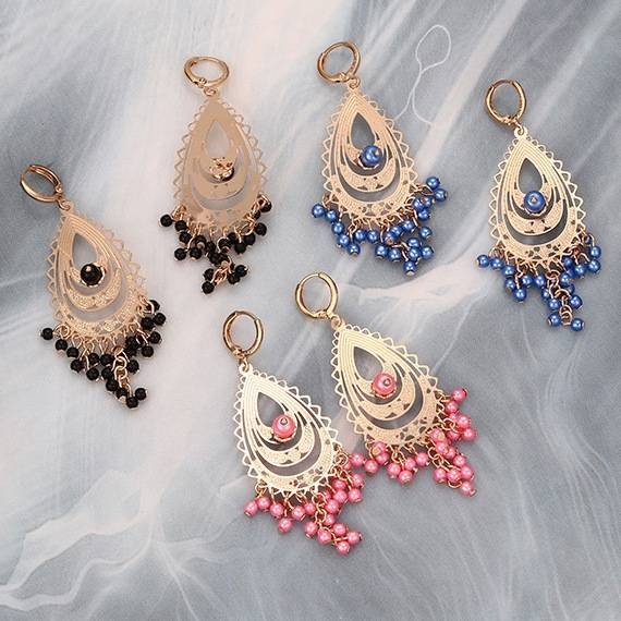 Изящные подвесные серьги с бусинами оптом 29641-черный