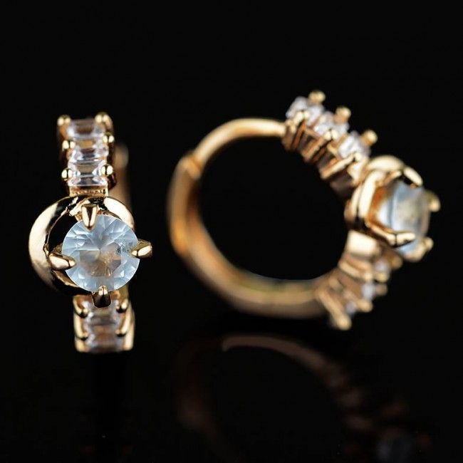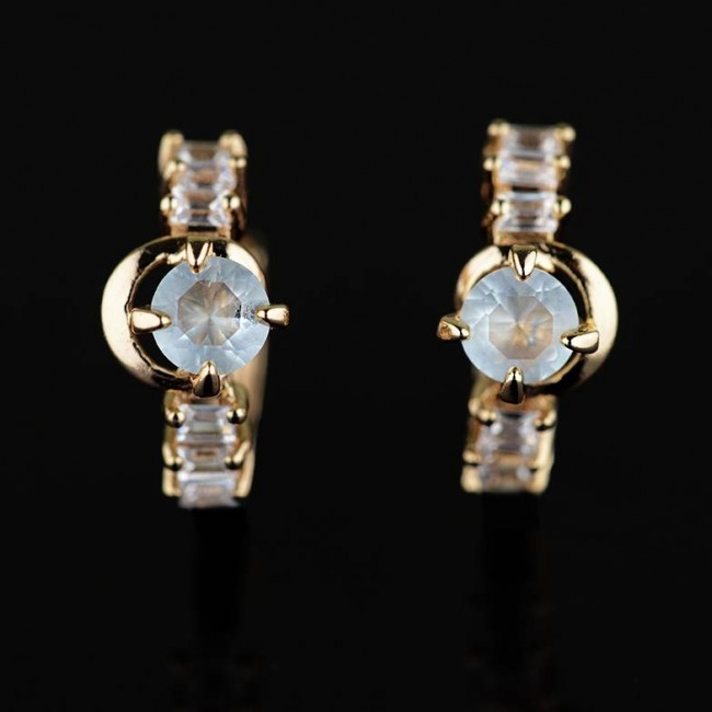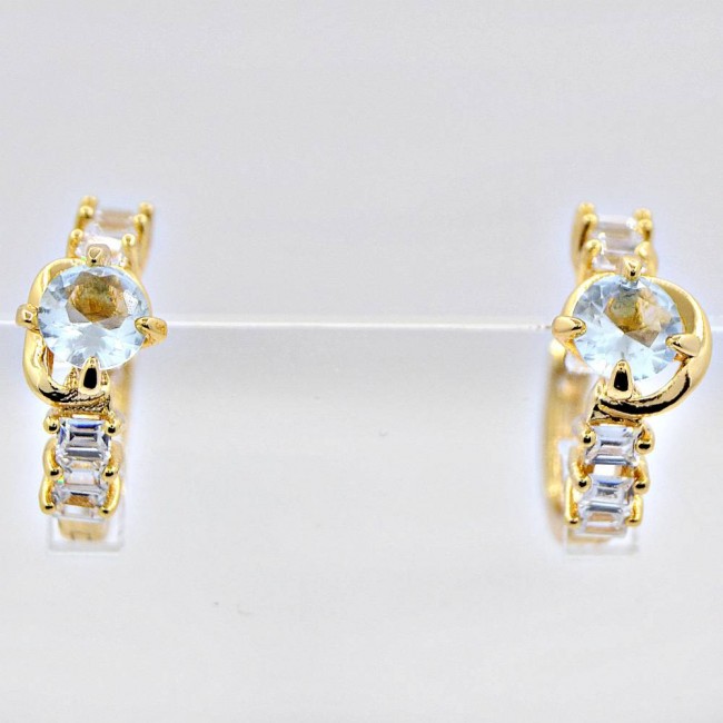 Великолепные серьги-колечки с фианитами 18К 90595 - светло-голубой