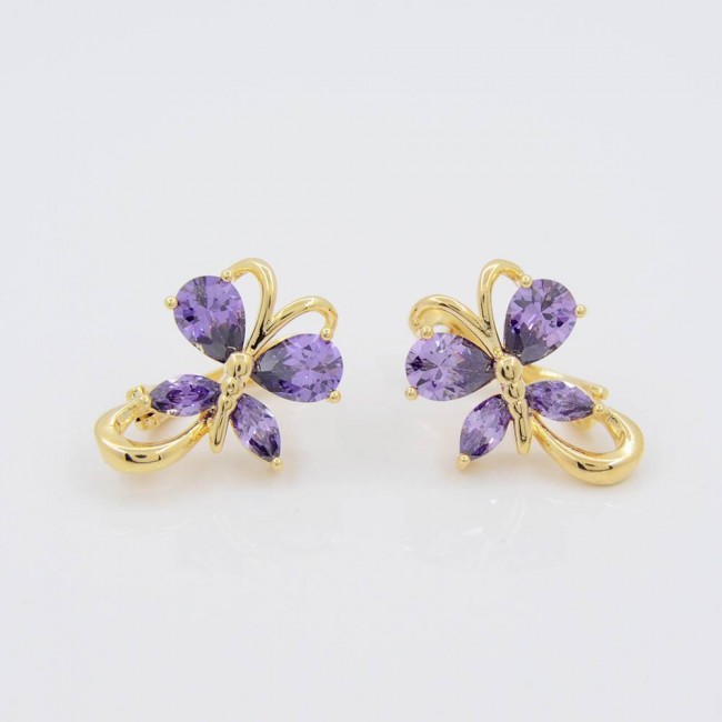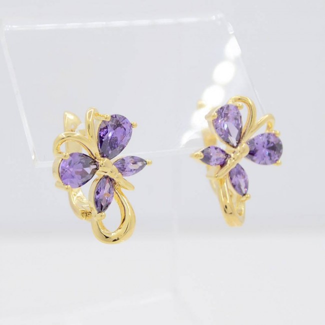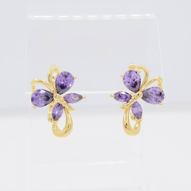 Чудесные серьги с фианитами в позолоте 10-2363- фиолетовый
