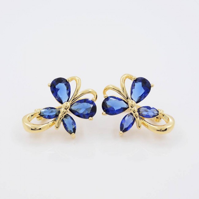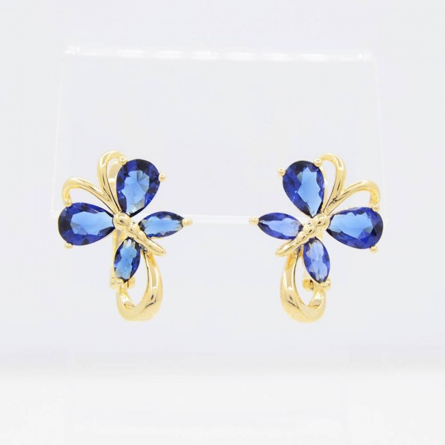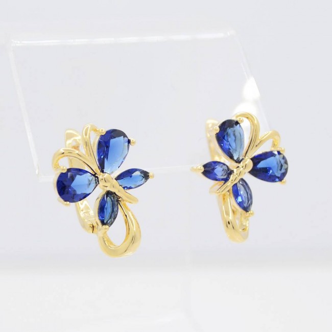 Чудесные серьги с фианитами в позолоте 10-2363- синий