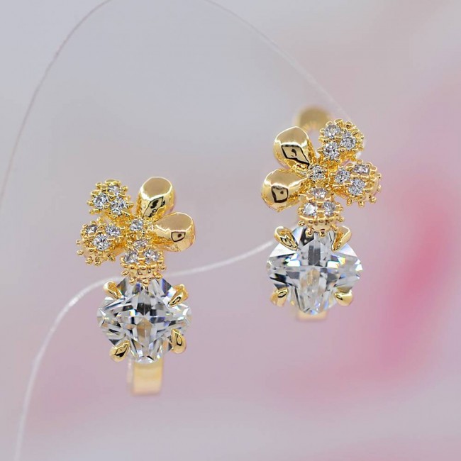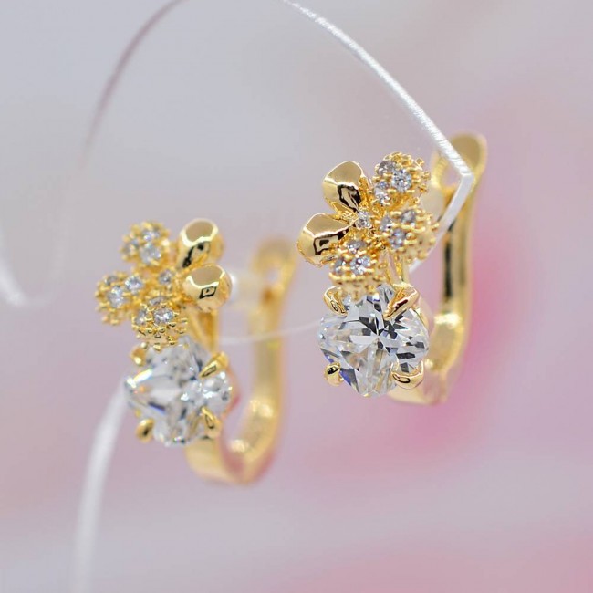 Сережки с белыми фианитами оптом, натуральная позолота модель 21283