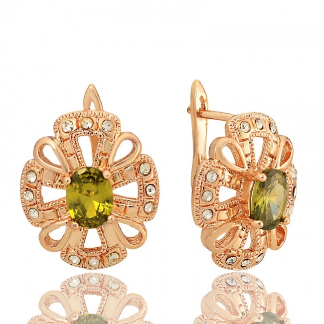 Позолоченные серьги Fallon 8223620-светло -зеленый фианит