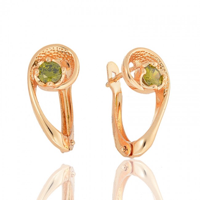 Позолоченные серьги Fallon 8225608-зелёный фианит