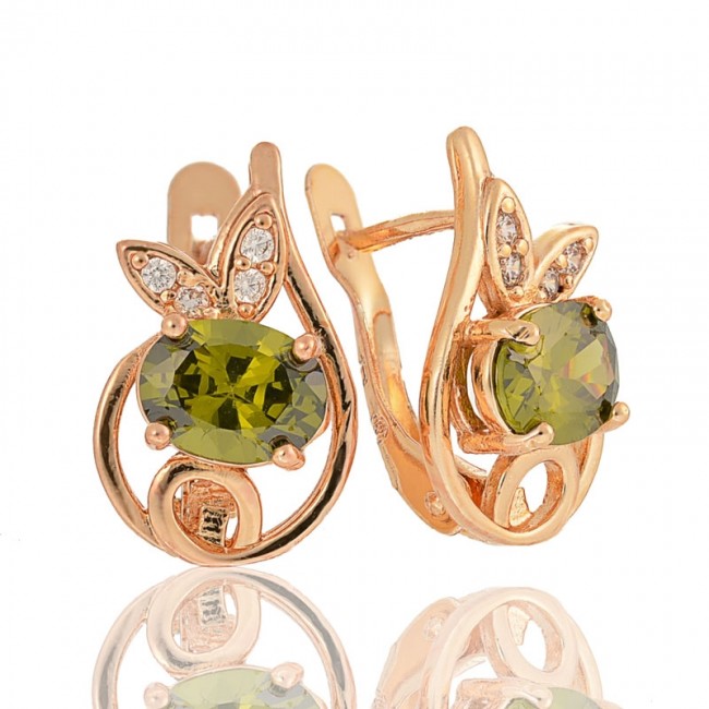 Позолоченные серьги Fallon 8225617-зеленый фианит