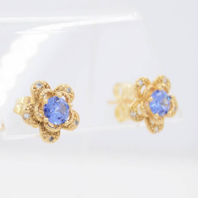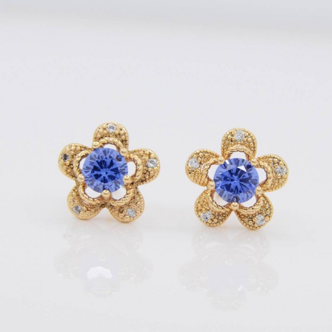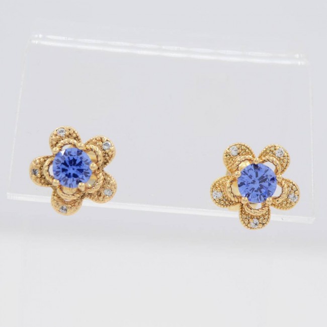 Прекрасные серьги-гвоздики с фианитами XP 10-2384- синий