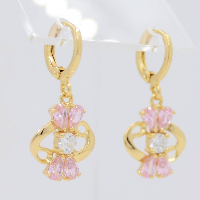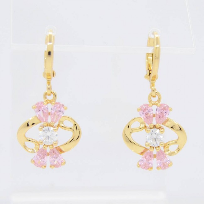 Превосходные серьги в позолоте с фианитами 10-2385- розовый