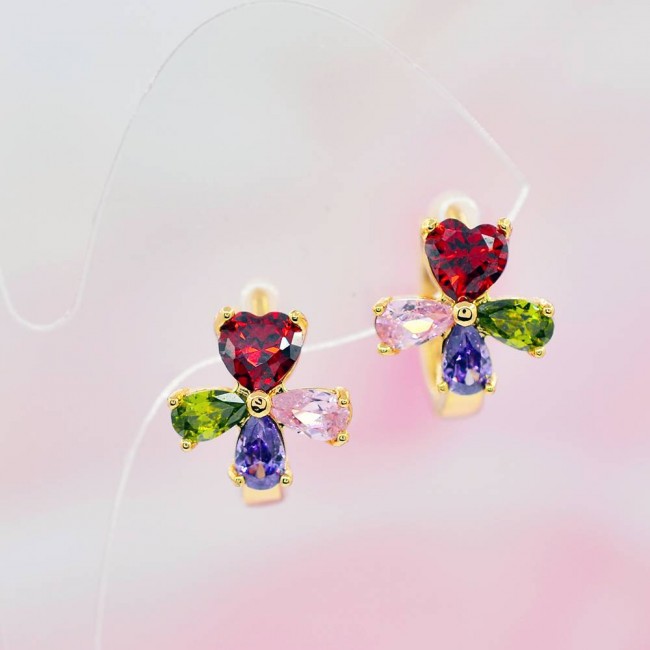 Сережки с разноцветными фианитами оптом, натуральная позолота модель 21283