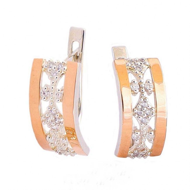 Серьги выполнены из серебра 925 пробы с напаянными пластинами золота 375 пробы, вставки фианит.Изделие выполнено с надежным английским замком.