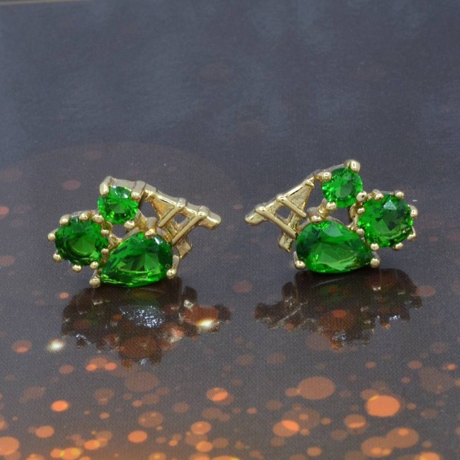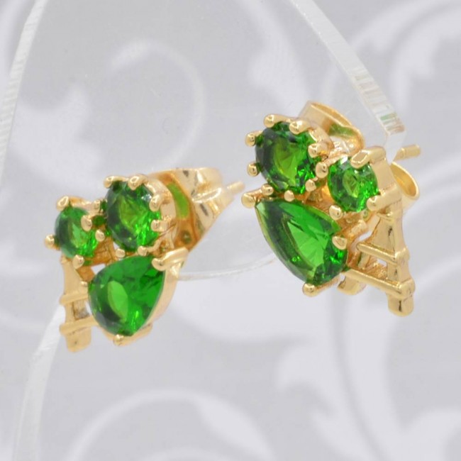 Шикарные серьги-гвоздики с фианитами ХР 10-9099-изумрудный