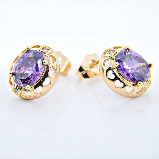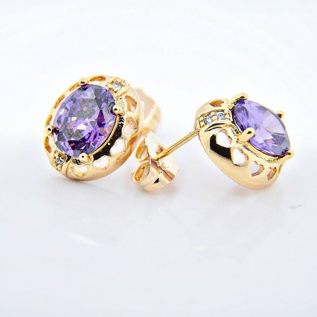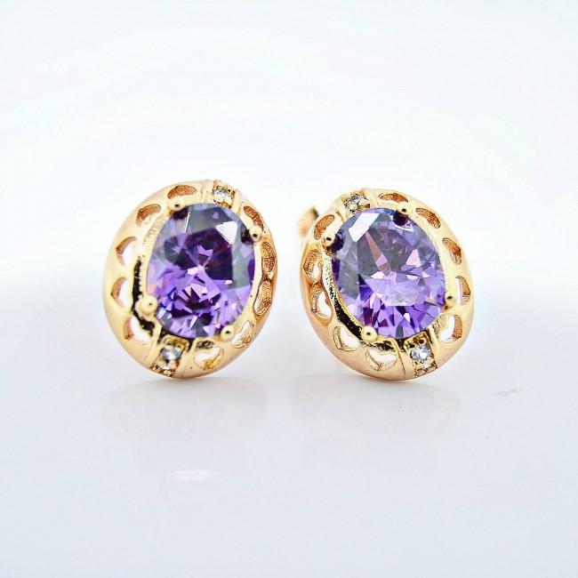 Сережки с фиолетовым фианитом оптом, модель 22243