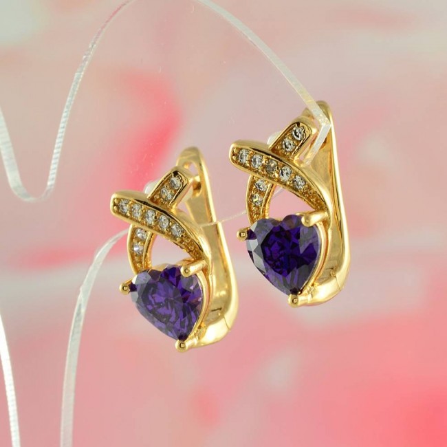Удивительные серьги с фианитами в позолоте 2015- фиолетовый