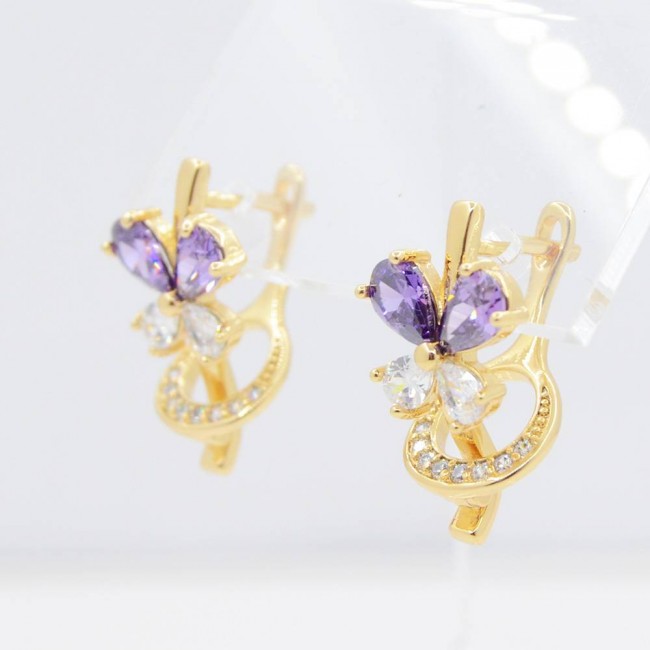 Серьги с фиолетовыми и белыми фианитами