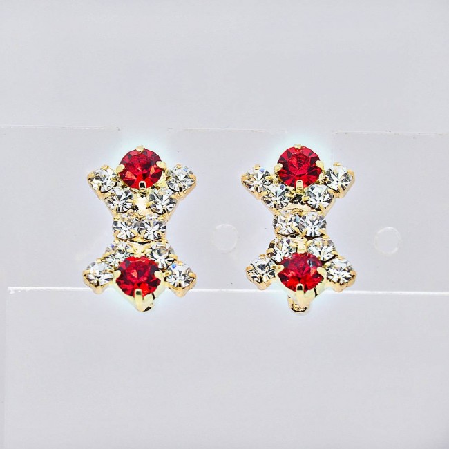 Сережки с красным фианитом и искусственными бриллиантами оптом, модель 25613